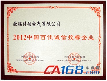 近期,由中國名企排行網、中國采購與招標網聯合舉辦了招投標領域年度聚焦活動,而倍受大家關注的“2012中國百佳誠信投標企業”評選活動也已圓滿結束。歐瑞傳動作為國內最具規模的集研發、生產、銷售為一體的工業自動化控制產品專業生產企業之一,最終以自身的實力和業界的口碑獲得了“2012中國百佳誠信投標企業”榮譽稱號。